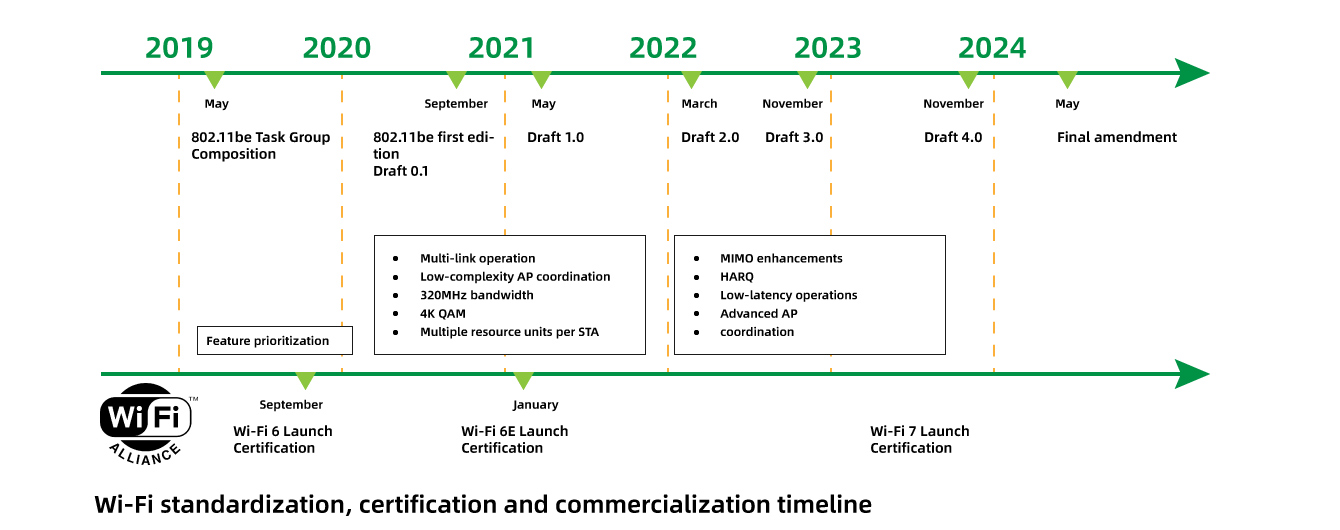 The Wi-Fi7 standardization certification and commercialization schedule is as follows: