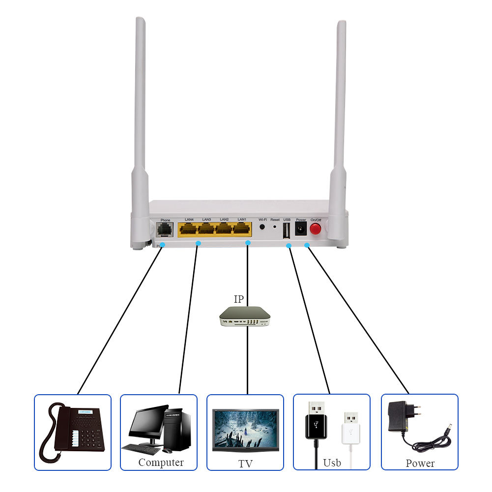 GPon EPon Fiber Modem ONT FTTH 4Ports 1GE 3FE RJ45 VoIP 300Mbps Wifi with USB