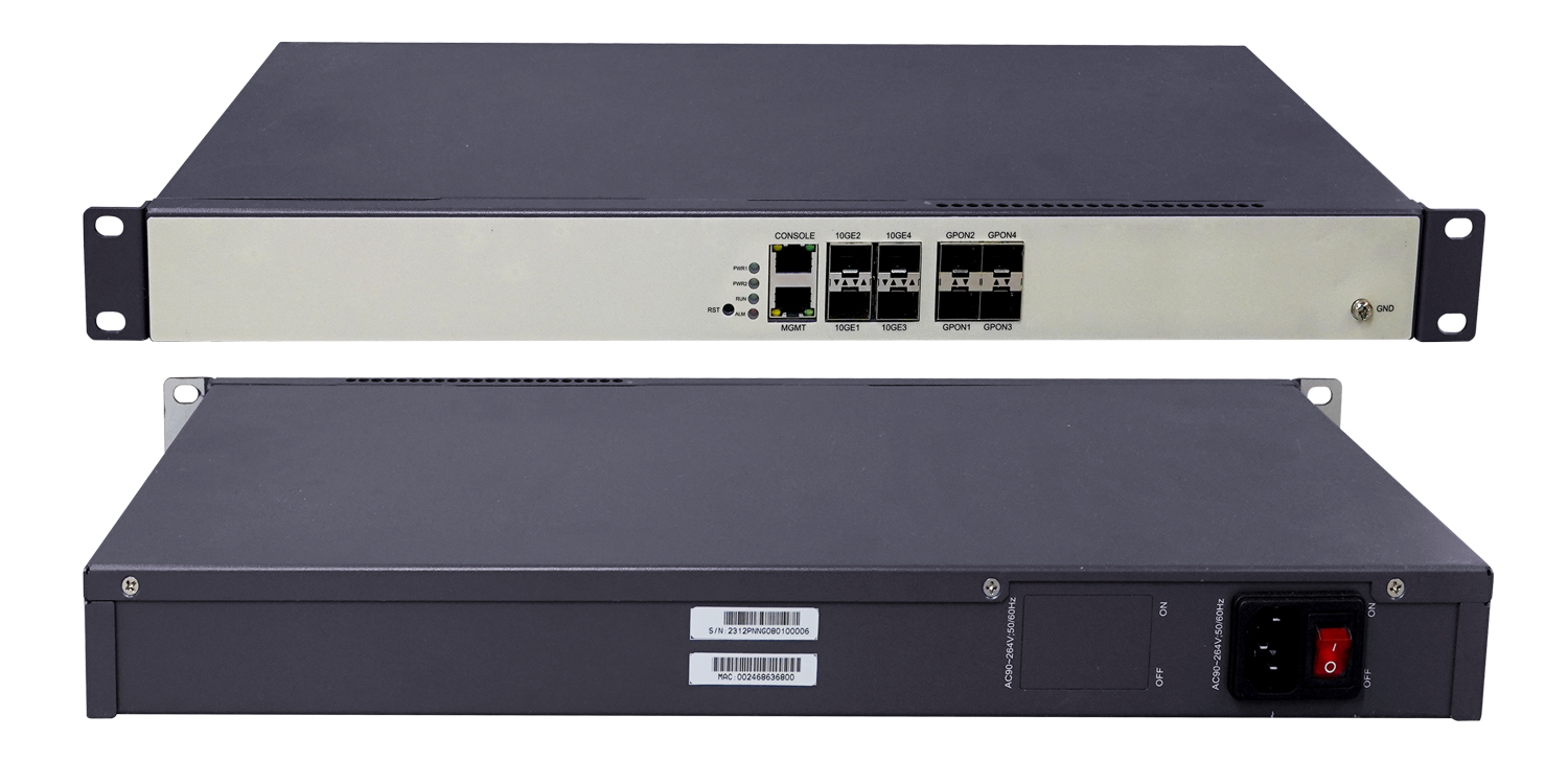 4*EPON port 4*10GE SFP+ 4GE RJ45 uplink port Dual power with optional EPon OLT